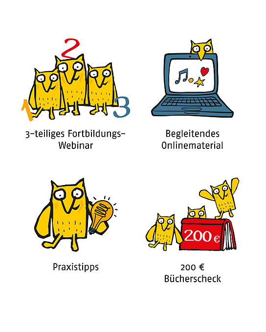 Mithilfe eines literaturpädagogischen Maßnahmepakets sollen Kitas für ihre nächste Bewerbung angemessen gestärkt werden. Die Maßnahmen umfassen die Teilnahme an einer Reihe von Webinaren zu den Themen Sprachbildung, Literacy, Elternarbeit und nachhaltige Leseförderung, sowie die Bereitstellung von Begleitmaterial und einem Bücherscheck im Wert von 200 Euro.