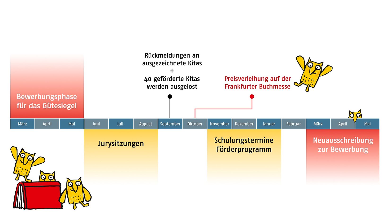 Um am Förderprogramm teilzunehmen, muss sich Ihre Einrichtung zuerst um das Gütesiegel Buchkita beworben haben. Die nächste Bewerbungsphase um das Gütesiegel erfolgt ab März 2026.